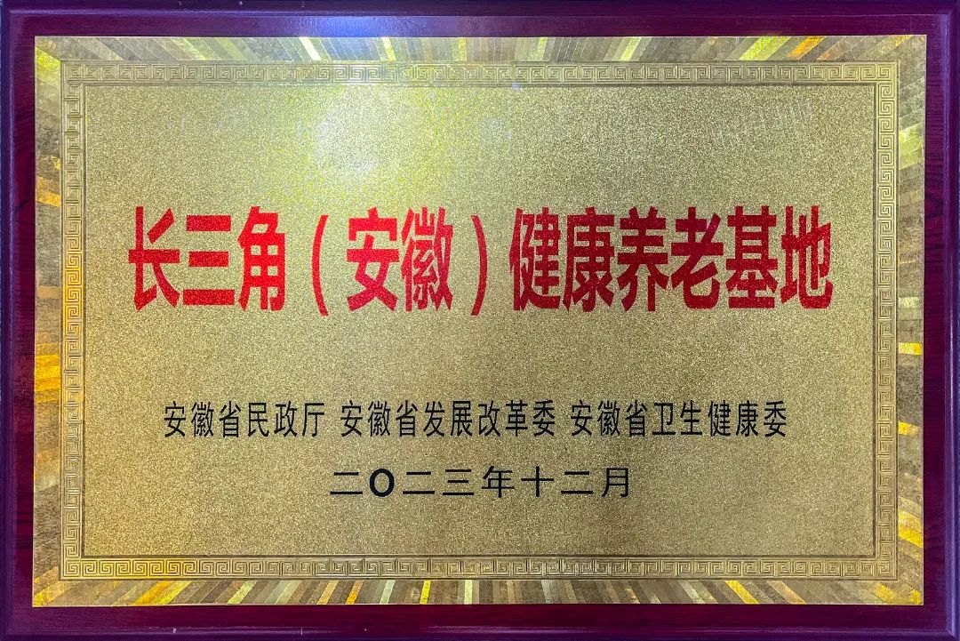 5月31日下午16:30,國家養老皖南示范基地被省民政廳、省發改委、省衛健委聯合認定為長三角(安徽)健康養老基地,并上臺領取榮譽牌匾和證書。